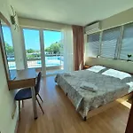 Overlooking the garden, the spacious 1-bedroom Първа Линия Лазур Поморие apartment is 3.4 km from Sunset Waterpark in Pomorie. This beachfront apartment also includes a terrace with a kitchenette.